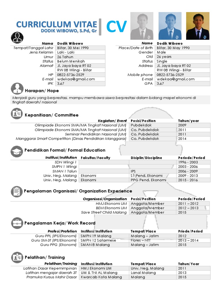 15 contoh cv daftar riwayat hidup terbaru dan terlengkap. Dodik wibowo, s.pd, gr | cv. 25+ contoh cv (curriculum vitae) lamaran kerja yang baik dan benar. Seleksi tahap 1 dilakukan melalui penilaian cv, unggahan dokumen, esai, dan tes. Berisi informasi mengenai diri anda atau bio, riwayat pendidikan, riwayat pekerjaan hingga riwayat prestasi anda. Semoga dengan adanya berbagai contoh cv berikut ini bisa membantu anda dalam membuat cv terbaik dan menarik. Pengajar praktik guru penggerak merupakan salah satu komponen dari bagian program pendidikan guru selain guru penggerak dan fasilitator. 2 contoh cv secara umum. Oleh gurupendidikandiposting pada 21 juni 2021. Contoh cv singkat bahasa inggris. Harapannya, guru penggerak dapat mendukung tumbuh kembang murid secara holistik sehingga menjadi pelajar pancasila. Setiap orang sebenarnya sudah memiliki cv, namun banyak di antara mereka yang tidak menuangkannya di dalam tulisan. Oleh sebab itu dalam membuat berkas yang diperlukan untuk.