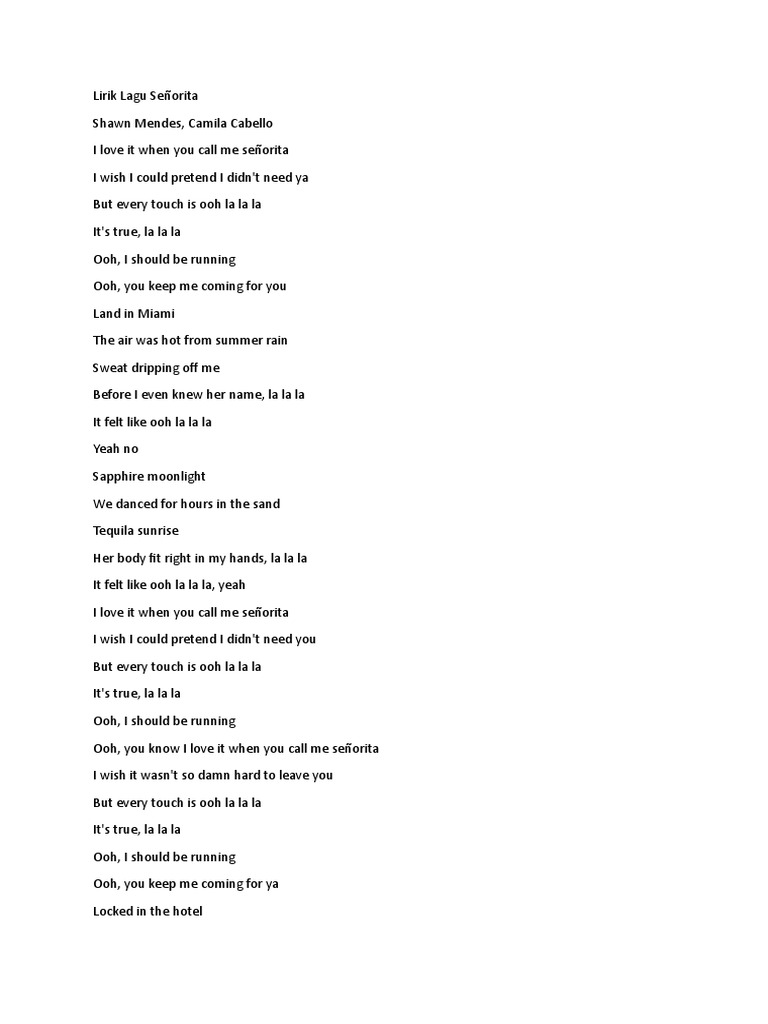 Lirik Lagu Senorita / Lirik lagu Señorita Camila Cabello feat Shawn Mendes - Comprehensive tabs archive with over 1,100,000 tabs!. Comprehensive tabs archive with over 1,100,000 tabs! Apr 13, 2018 · download lagu gratis, gudang lagu mp3 gratis, lagu barat terbaik. Jika kamu sudah memiliki akun Layaknya sepucuk lagu di tengah waktu yang bersinar menyilaukan ini, kuinginkanmu mempercayakan air matamu kepadaku roda gigi yang berputar di fajar gelap malam saat hujan turun pun terus terjaga meski bertaruh nyawa, seraya dibasahi oleh luka yang tak terasa perih, ku'kan bangkit berdiri mengeringkannya segala hal yang kau harapkan, segala hal. Your #1 source for chords, guitar tabs, bass tabs, ukulele chords, guitar pro and power tabs.